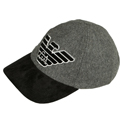 Large Armani logo to front of cap. Black corduroy to peak of cap. Grey crown to cap. Adustable strap with velcro fastening to back of cap. Emporio Armani piping inside of cap.