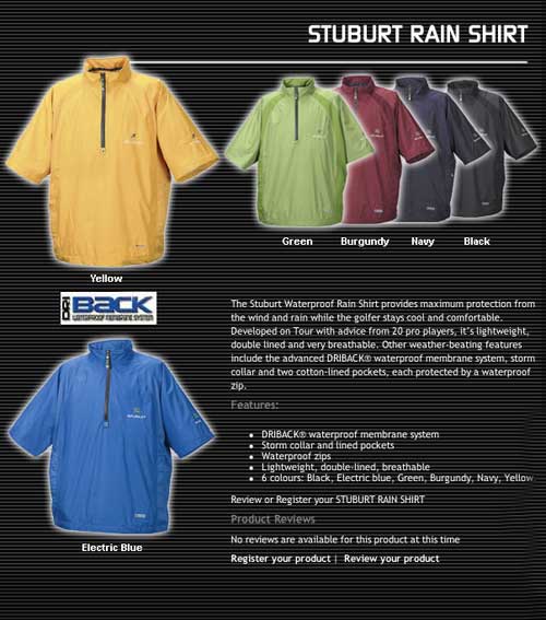 Stuburt Half-Sleeve Golf Rain Shirt