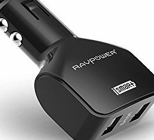 RAVPower Dual USB Port Car Charger (4.8 A / 24 W, Dual iSmart Charging, Built-in Safety Protection)