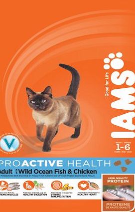 Iams Cat Food ProActive Health Adult With Wild Ocean Fish and Chicken 1 kg - Pack of 4