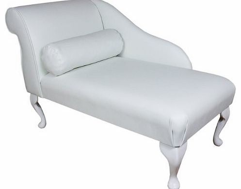 Beaumont 41`` Mini Chaise Longue in a White Faux Leather with Bolster Cushion