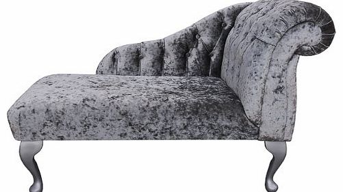 Beaumont Home Furnishings Buttoned Mini Chaise Longue in a Pewter / Silver / Grey Chenille fabric