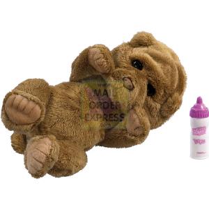 An adorable baby bear that makes lifelike noises and wakes up when you scratch its tummy