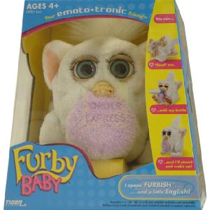 Furby Baby is a young companion that needs love and attention in order to grow Furby Baby will be curled up and as you feed him he will grow and uncurl until he can stand up He ll speak baby Furbish and make special Furby Baby sounds He s excitable and loves to play but like any other baby he needs his sleep Furby Baby can also interact with Furby Requires 3 x AA batteries Not included Order MOE120520