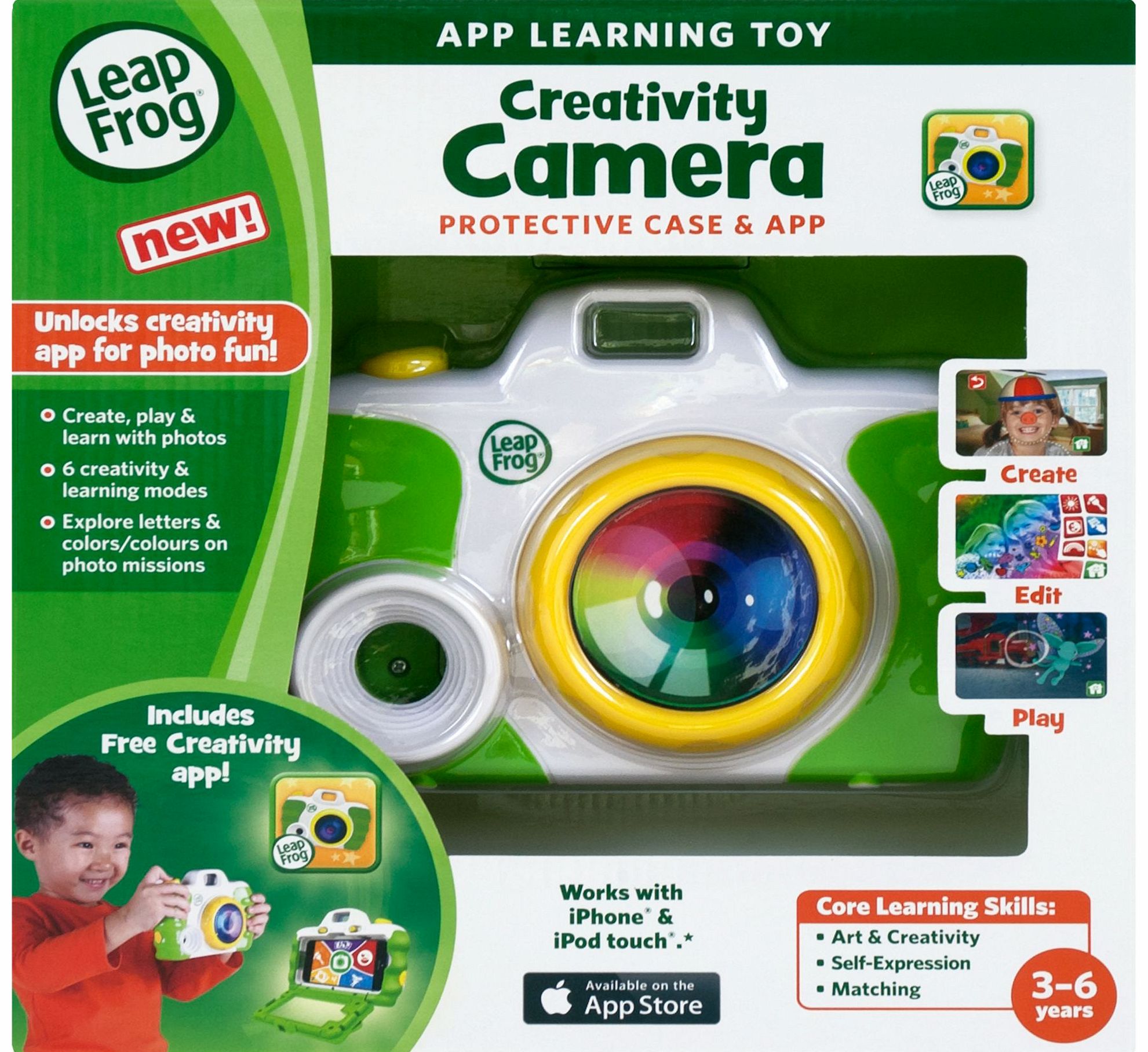 Create, learn and express your imagination with photos! Designed for little ones, the Creativity Camera Protective Case and App combine the camera power of iPhone and iPod touch with creative learning fun! The case protects your iPhone or iPod touch device and the information stored in it while your child enjoys hours of play. To use, simply download the included creativity learning app, and place your device into the protective case for hours of games and activities. Children can edit photos t