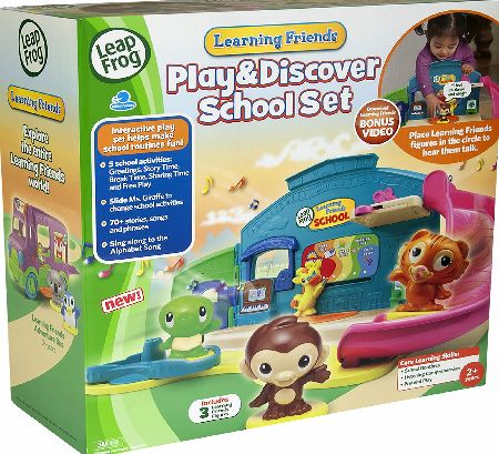 Welcome your child to the world of school with the LeapFrog Learning Friends Schooltime Adventures Playset. Slide the teacher, Ms. Giraffe, to get familiar with 5 school activities: Greetings, Sharing Time, Story Time, Break Time and Free Play. Fun rhymes and open-ended questions help kids prepare for school routines through pretend play.Designed for children ages 2 and up, this play set includes three interactive Learning Friends-Monkey, Turtle and Tiger-who have unique personalities and say t