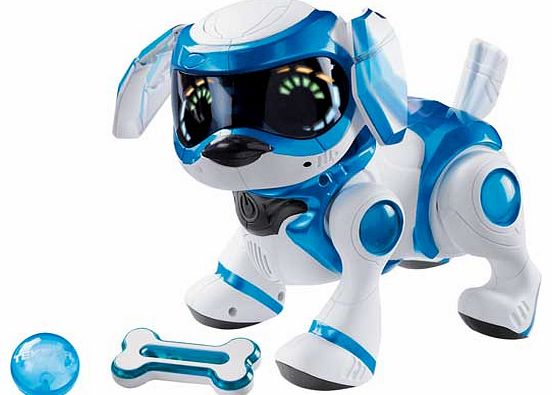 This Teksta Robotic Puppy will become your new best friend! With the ability to respond to your own voice and physical gestures. it is just like having a real life puppy. He has over 100 physical and interactive play features including a ball and a bone for you to play with. Teksta is a life-like robotic puppy that responds to your voice. physical gestures. lights and sounds. He barks. cries. whimpers and uses expressive eye patterns to share his feelings. With over 100 physical and interactive
