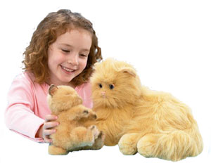 Proud loveable mother likes to make her cute playful kitten laugh by rubbing noses and tickling kittens tummy Requires 3 x AAA batteries Included