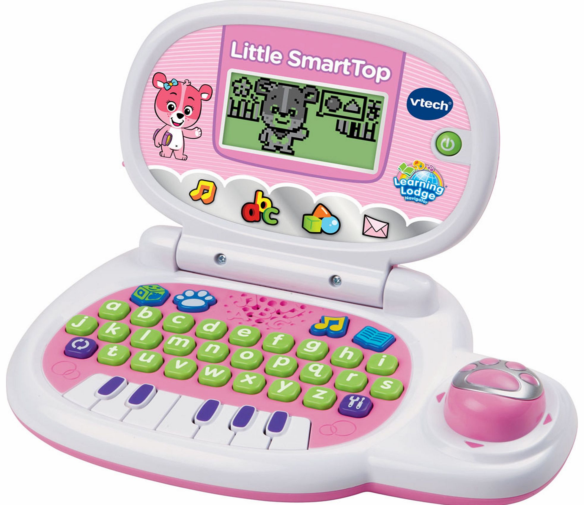 | The VTech Little Smart Top - Pink features an A-Z keyboard children can learn letter sounds, names and objects beginning with that letter. 10 fun activities help discover shapes |