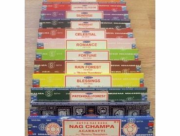 Selction of 12 Incense by Satya, The most famous being Nag Champa in its distinctive blue box. Withi