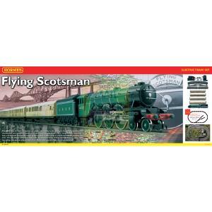 The famous London to Scotland train is presented here in a top-of-the-range Hornby train set with LNER 4-6-2 locomotive and classic teak coaches depicting the Flying Scotsman as it ran non-stop from London to Edinburgh in the summer seasons of the 1930 s Set includes LNER Flying Scotsman locomotive Class A1 3 LNER composite coaches LNER brake composite coach Track Starter Oval plus extension Track Packs A and B with 2 points and 2 buffer stops R964 Wall Plug Transformer R965 Train Controller R602 Power Connecting Clip and R8011 TrakMat