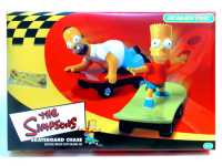 Features Homer and Bart racing against each other on skateboards. Circuit includes banking area and tunnel section, plus track mat and hand throttles.