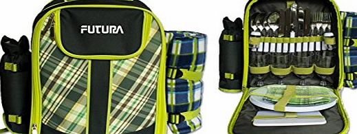 Futura 4 Person Picnic Backpack/Rucksack with cooler compartment/padded straps/bottle holder/front pocket/fleece blanket with waterproof backing amp; 21 Picnic set