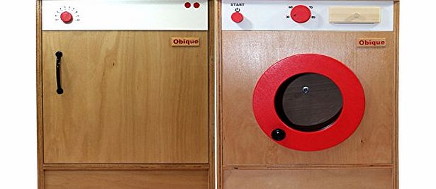 Obique Childrens Wooden Toy Kitchen Units Set of 2, Fridge Unit and Washing Machine Unit Beech Wood Ply