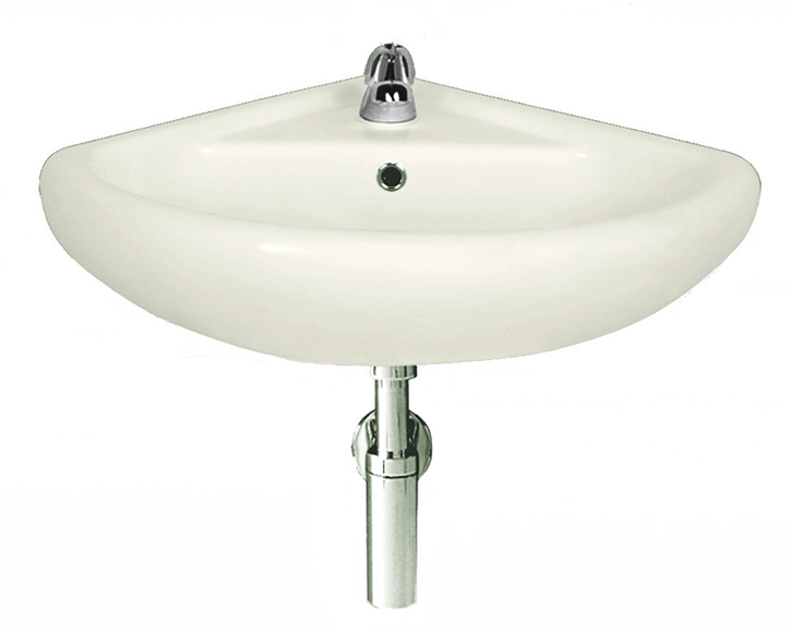 Simple corner basin with compact dimensions ideal for use in small bathrooms or cloakrooms. Dimensio