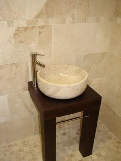 Solid Stone Basin Travertine Curved Base |