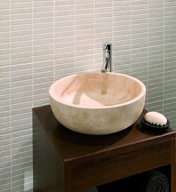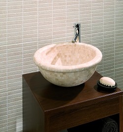 solid Stone Basin Travertine Mosaic Curved Base |