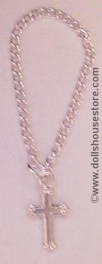 1:12 Scale Miniature Silver Cross and Chain