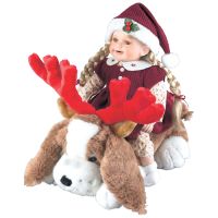 . Beautiful ceramic doll, hitching a ride with Barney, a large plush dog. Overall height 41cm (16"e;) approx. 1200 Limited edition.