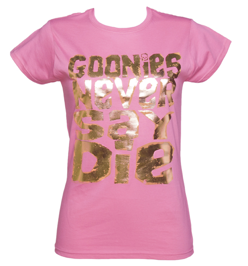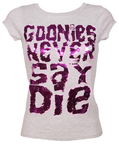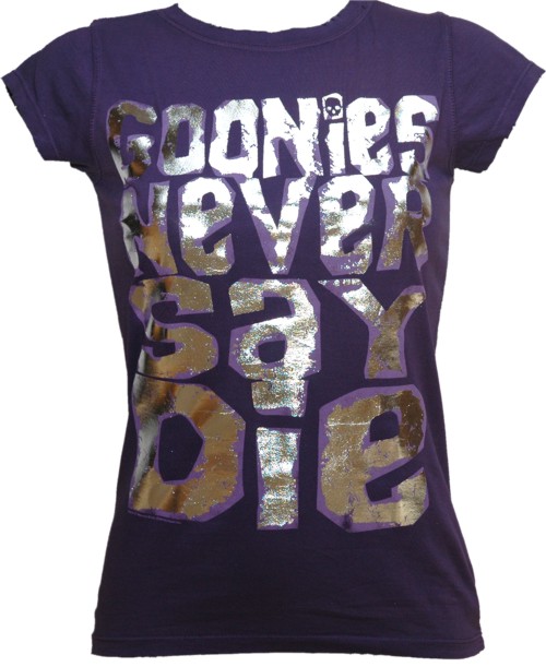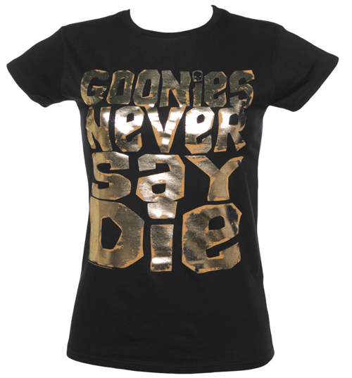 TruffleShuffle Ladies Foil Print Goonies Never Say Die T-Shirt |