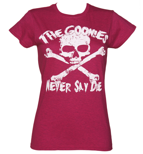 TruffleShuffle Ladies Heather Pink Goonies Never Say Die T-Shirt |