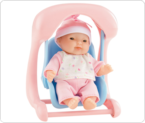 Lets swing the baby back and forth in her seat. We can sing her a song
