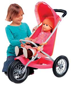 A wheel metal framed pushchair with canopy and handy storage compartment underneath. Doll not included. Suitable for any Roxanne and Rosy doll. Colours and styles may vary. Size (H)79, (W)40, (L)61cm.For ages 3 years and over.