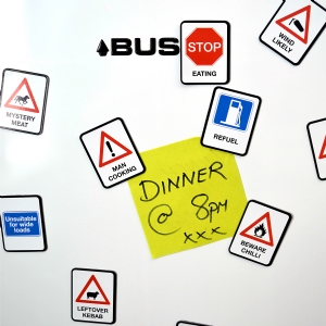 Food Humour Funny Fridge Magnets These fridge magnets are small but clever! Each one is 3.4 x 4 cm and made of magnetic isotropic rubber, so they are sticky and flexible. Each one is based on a road sign, as if all users of the fridge should be warned of hazards ahead! Key Product Features: Size of each magnet: 3.4 x 4 cms, Made of magnetic isotropic rubber , 15 magnets in total, Great gift for students, Ideal stocking filler,