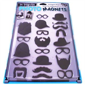 In Disguise Photo Magnets Everyone has magnets on their fridge, some people have photos of nearest and dearest on there too. Now you can disguise them with this set of funky fridge magnets! With hats, moustaches, beards and glasses, you can add some humour to your pictures and get creative! Key Product Features: Includes 7 x eyewear shapes, 5 hat shapes and 10 facial hair shapes, Glasses measure around 4.7 cm x 2 cm each, Hats measure approx 5 cm x 4 cm each, Moustaches measure approx 5.6 cm x