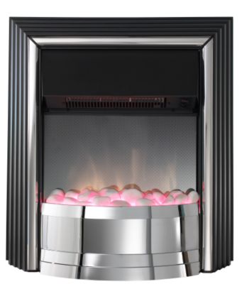 Freestanding fire fits flat-to-wall, Unique Optiflame® effect, Heat Output: min 1kW, max 2kW, Heat Input: 2kW, Flame effect can be used independently of heat, No chimney or flue required, We recommend that electrical fires are fitted by a qualified electrician, All fires must be installed in accordance with the manufacturers installation instructions and current building regulations, To calculate running costs, multiply the heat input of the fire by your gas/electricity tariff (heat in