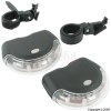Bright LED lights. Multi functions, just press button to choose. Each lamp takes two x AA batteries.