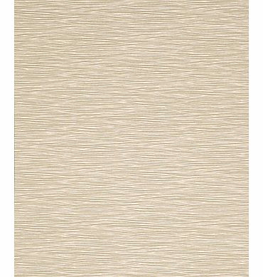 Scrubbable vinyl wallpaper, featuring texture-look stripe pattern in putty beige with 13cm repeat.