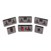 Volex Electrical Kitchen Switch and Socket Starter Kit. Stylish round-edge black nickel with black inserts. Retro-fit plate. All the accessories you need in one 6-piece package.