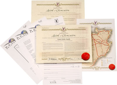 Join the Elite and become the envy of all your friends. No more boring Mr & Mrs, you can now legally become a titled British Lord or Lady!This 100% genuine gift pack is a perfect gift. What better way to win your partners heart than to make them a Lord or Lady! Dont forget to buy yourself a title as well, otherwise you may become the servant of the household!!!This great gift pack entitles you to a plot of land on the Glencairn estate making you a laird of Glencairn. This means you are a Scottish landowner and the term ‘Laird’ is commonly accepted throughout the world as Lord. The female version of Laird you would expect to be Lairdy, however this is actually Lady. So you can be a Lord or/and Lady of GlencairnOnce you purchase a title, you will initially receive a colourful gift pack containing registration documentation. You can hand this to the recepient as a gift and they then complete the documents and receive the official deeds. Or you can complete the forms on their behalf and the title deeds wi